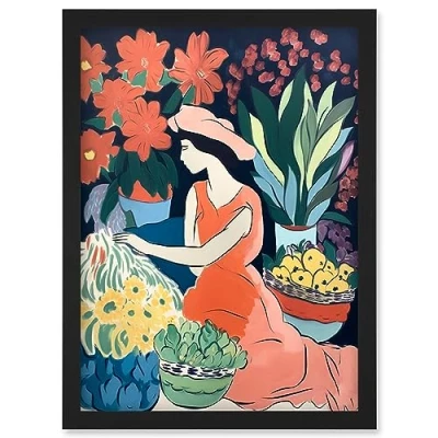Artery8 Danish Pastel Aesthetic Matisse Flower Market Watercolour Painting Floral Bouquets Artwork Framed Wall Art Print A4