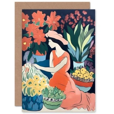 Artery8 Danish Pastel Aesthetic Matisse Style Flowers for Wife Her Mum Sister Daughter Mom Gran Nan Birthday Thank You Mothers Day Blank Art Greeting Card