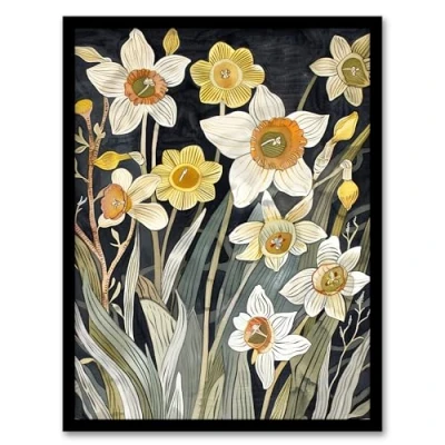 Artery8 Dark Daffodils in Bloom Artwork Spring Floral Living Room Framed Wall Art Print A4