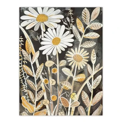 Artery8 Dark Daisies Forest Artwork Quirky Floral Rustic Living Room Large Wall Art Poster Print Thick Paper 18X24 Inch
