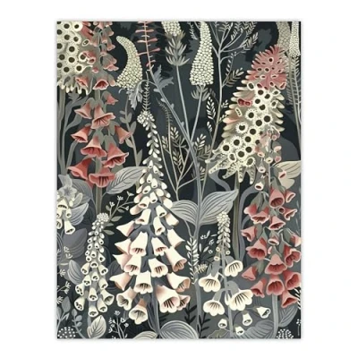 Artery8 Dark Foxglove Forest Flowers Artwork Grey Floral Living Room Extra Large XL Wall Art Poster Print