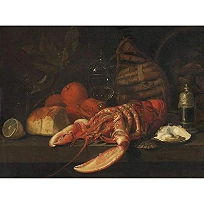 Artery8 David Davidsz De Heem Still Life Lobster Painting Art Print Canvas Premium Wall Decor Poster Mural