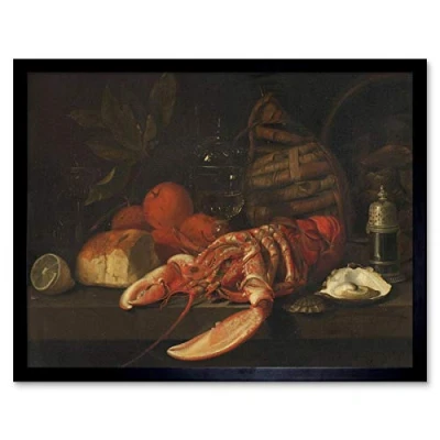 Artery8 David Davidsz De Heem Still Life Lobster Painting Art Print Framed Poster Wall Decor 12x16 inch