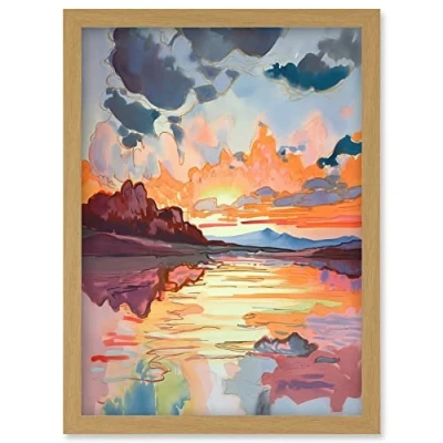 Artery8 Dawn Break Atmospheric Clouds Over Mono Lake Modern Watercolour Painting Artwork Framed Wall Art Print A4