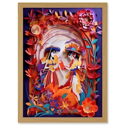 Artery8 Day of the Dead Dancers Floral Kirigami Collage Artwork Framed A3 Wall Art Print