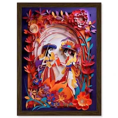 Artery8 Day of the Dead Dancers Floral Kirigami Collage Artwork Framed Wall Art Print A4