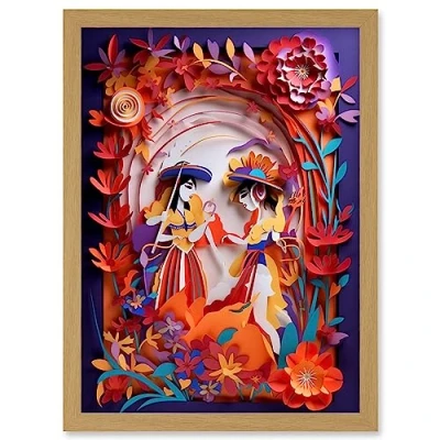 Artery8 Day of the Dead Dancers Floral Kirigami Collage Artwork Framed Wall Art Print A4