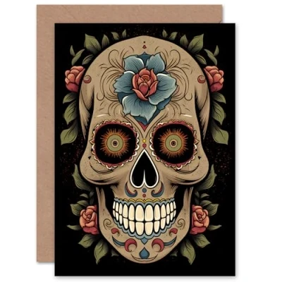 Artery8 Day of the Dead Skull for Wife Her Mum Sister Daughter Mom Gran Nan Birthday Thank You Congratulations Blank Art Greeting Card
