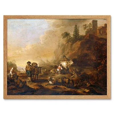 Artery8 De Bie Landscape With Herdsmen And Their Droves Art Print Framed Poster Wall Decor 12x16 inch