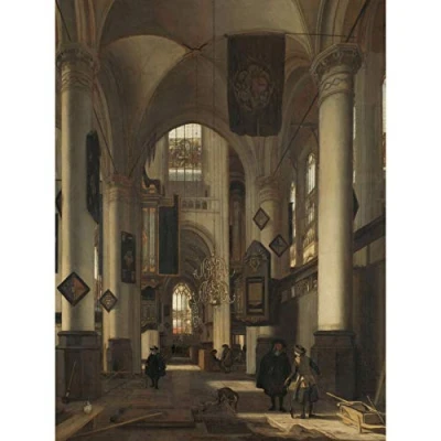 Artery8 De Witte Interior Gothic Protestant Church Premium Wall Art Canvas Print 18X24 Inch