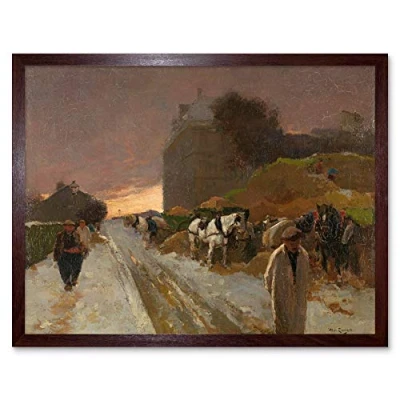 Artery8 De Zwart Street In Montmartre Paris Winter Painting Art Print Framed Poster Wall Decor 12x16 inch