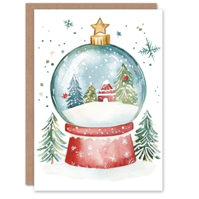 Artery8 Decorated Tree Cabin Snow Globe Blank For Him Or Her Art Xmas Festive Christmas Card