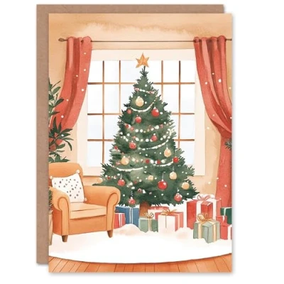 Artery8 Decorated Tree Presents Living Room Blank For Him Or Her Art Xmas Festive Christmas Card