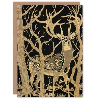 Artery8 Deer Forest Tree Tan Brown Landscape Greeting Birthday Card Him Her All Blank