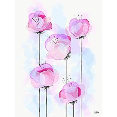 Artery8 Delicate Pink Flowers Poppy Painting Art Print Canvas Premium Wall Decor Poster Mural