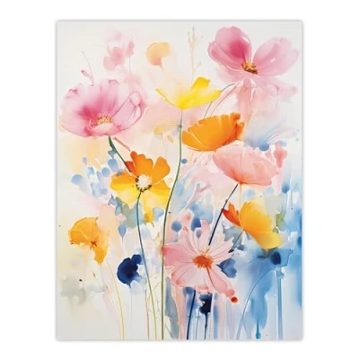 Artery8 Delicate Wildflowers Pastel Watercolour Flowers Extra Large XL Wall Art Poster Print