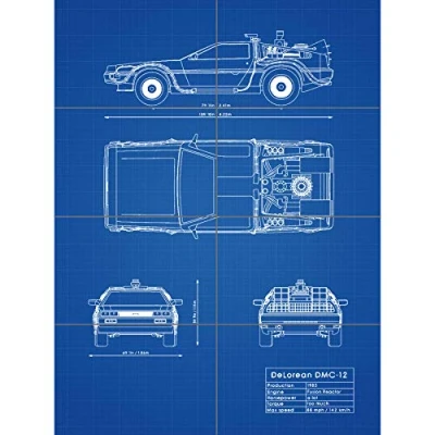 Artery8 DeLorean DMC 13 Future Time Travel Car Blueprint Plan XL Giant Panel Poster (8 Sections)
