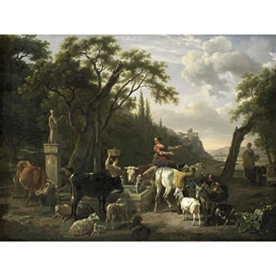 Artery8 Demarne Italian Landscape Shepherds Animals Premium Wall Art Canvas Print 18X24 Inch