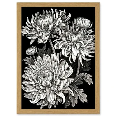 Artery8 Detailed Black and White Chrysanthemum Flowers Artwork Framed A3 Wall Art Print