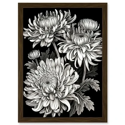 Artery8 Detailed Black and White Chrysanthemum Flowers Artwork Framed A3 Wall Art Print