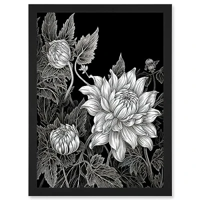 Artery8 Detailed Black and White Dahlia Flower Blooms Artwork Framed Wall Art Print A4