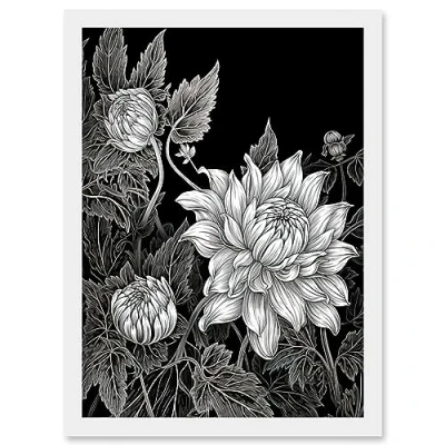 Artery8 Detailed Black and White Dahlia Flower Blooms Artwork Framed Wall Art Print A4