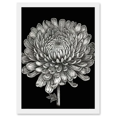Artery8 Detailed Chrysanthemum Flower Bloom Illustration Artwork Framed Wall Art Print A4