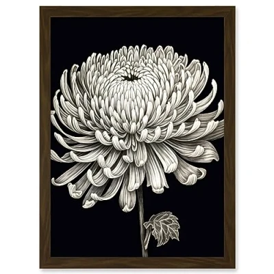 Artery8 Detailed Illustration Chrysanthemum Bloom Flower Artwork Framed Wall Art Print A4