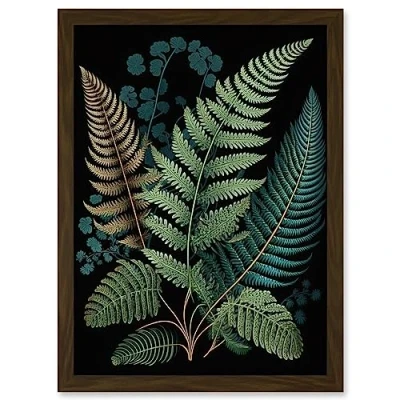 Artery8 Detailed Leaves Fern Fronds Botanical Illustration Artwork Framed A3 Wall Art Print