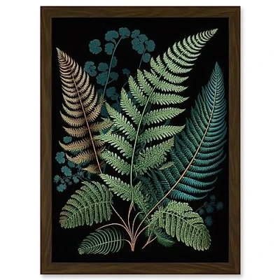 Artery8 Detailed Leaves Fern Fronds Botanical Illustration Artwork Framed Wall Art Print A4