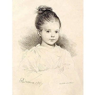 Artery8 Deveria Marie Clerambault Child Portrait Drawing Art Print Canvas Premium Wall Decor Poster Mural