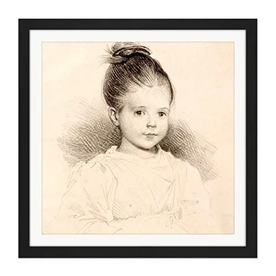 Artery8 Deveria Marie Clerambault Child Portrait Drawing Square Wooden Framed Wall Art Print Picture 16X16 Inch