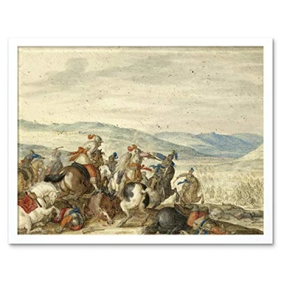 Artery8 Dietterlin Cavalry Skirmish Mountainous Landscape Art Print Framed Poster Wall Decor 12x16 inch