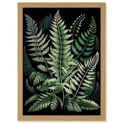 Artery8 Different Fern Fronds Detailed Leaves Illustration Artwork Framed A3 Wall Art Print