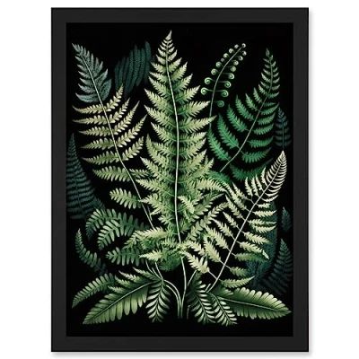 Artery8 Different Fern Fronds Detailed Leaves Illustration Artwork Framed Wall Art Print A4