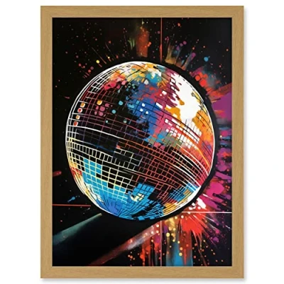 Artery8 Disco Ball Music Night Reflections Modern Spray Paint Painting Artwork Framed Wall Art Print A4