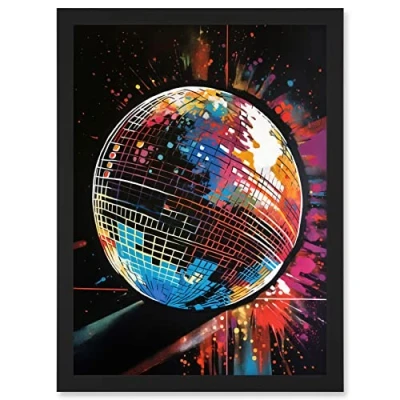 Artery8 Disco Ball Music Night Reflections Modern Spray Paint Painting Artwork Framed Wall Art Print A4