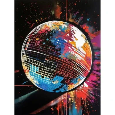 Artery8 Disco Ball Music Night Reflections Modern Spray Paint Painting Large Wall Art Poster Print Thick Paper 18X24 Inch