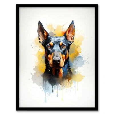 Artery8 Doberman Lovers Gift Watercolour Pet Portrait Painting Artwork Framed Wall Art Print A4