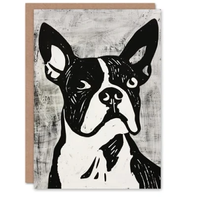 Artery8 Dog Lover Abstract Black White Boston Terrier Blank For Him Or Her Art Birthday Card