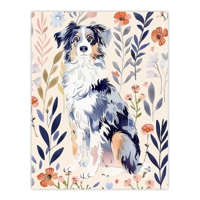 Artery8 Dog Lover Australian Sheepdog Floral Portrait Living Room Large Wall Art Poster Print Thick Paper 18X24 Inch