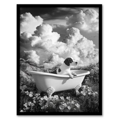 Artery8 Dog Lover Beagle in Floral Meadow Bathtub Surreal Bathroom Toilet Artwork Framed Wall Art Print A4