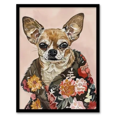Artery8 Dog Lover Chihuahua With Floral Fur Coat Living Room Artwork Framed Wall Art Print A4