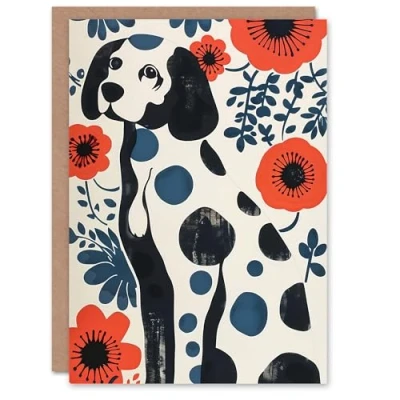 Artery8 Dog Lover Dalmatian Abstract Floral Portrait Greeting Birthday Card Him Her All Blank