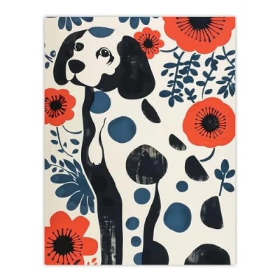 Artery8 Dog Lover Dalmatian Abstract Floral Portrait Living Room Large Wall Art Poster Print Thick Paper 18X24 Inch