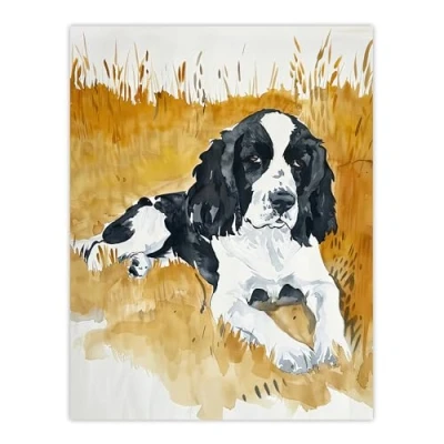 Artery8 Dog Lover English Springer Spaniel in Wheat Field Living Room Large Wall Art Poster Print Thick Paper 18X24 Inch