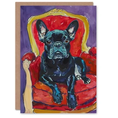 Artery8 Dog Lover French Bulldog on Red Armchair Greeting Birthday Card Him Her All Blank