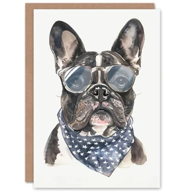 Artery8 Dog Lover French Bulldog Sunglasses and Bandana Blank For Him Or Her Art Birthday Card