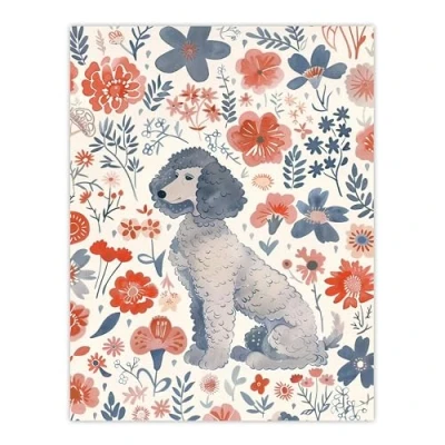 Artery8 Dog Lover Grey Poodle With Pink Flower Pattern Living Room Large Wall Art Poster Print Thick Paper 18X24 Inch