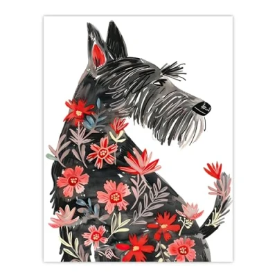 Artery8 Dog Lover Scottish Terrier with Flowers in Fur Living Room Large Wall Art Poster Print Thick Paper 18X24 Inch